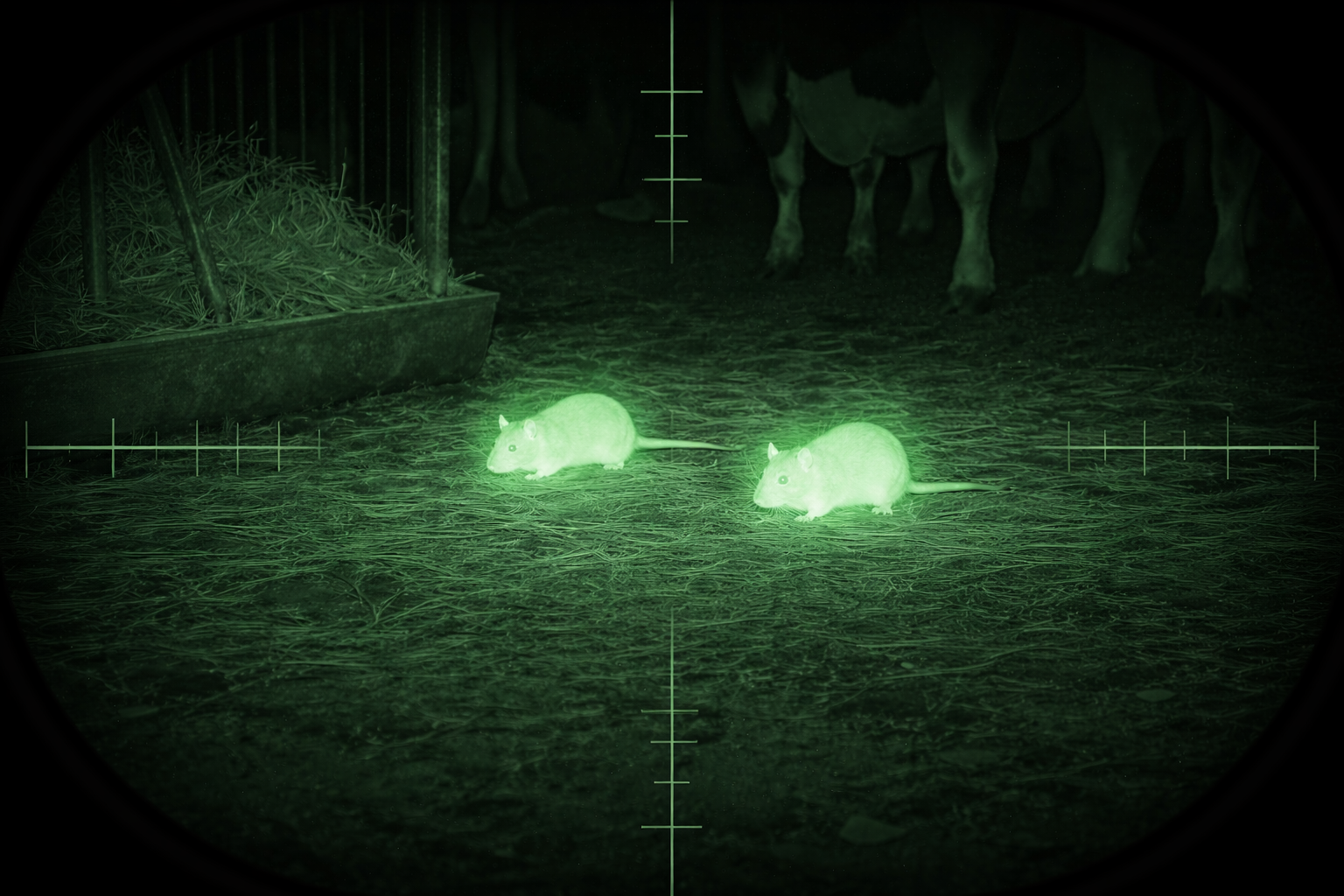 Ik begin om met een warmtebeeldspotter te kijken waar de ratten zich bevinden, en waar zij vandaan komen.